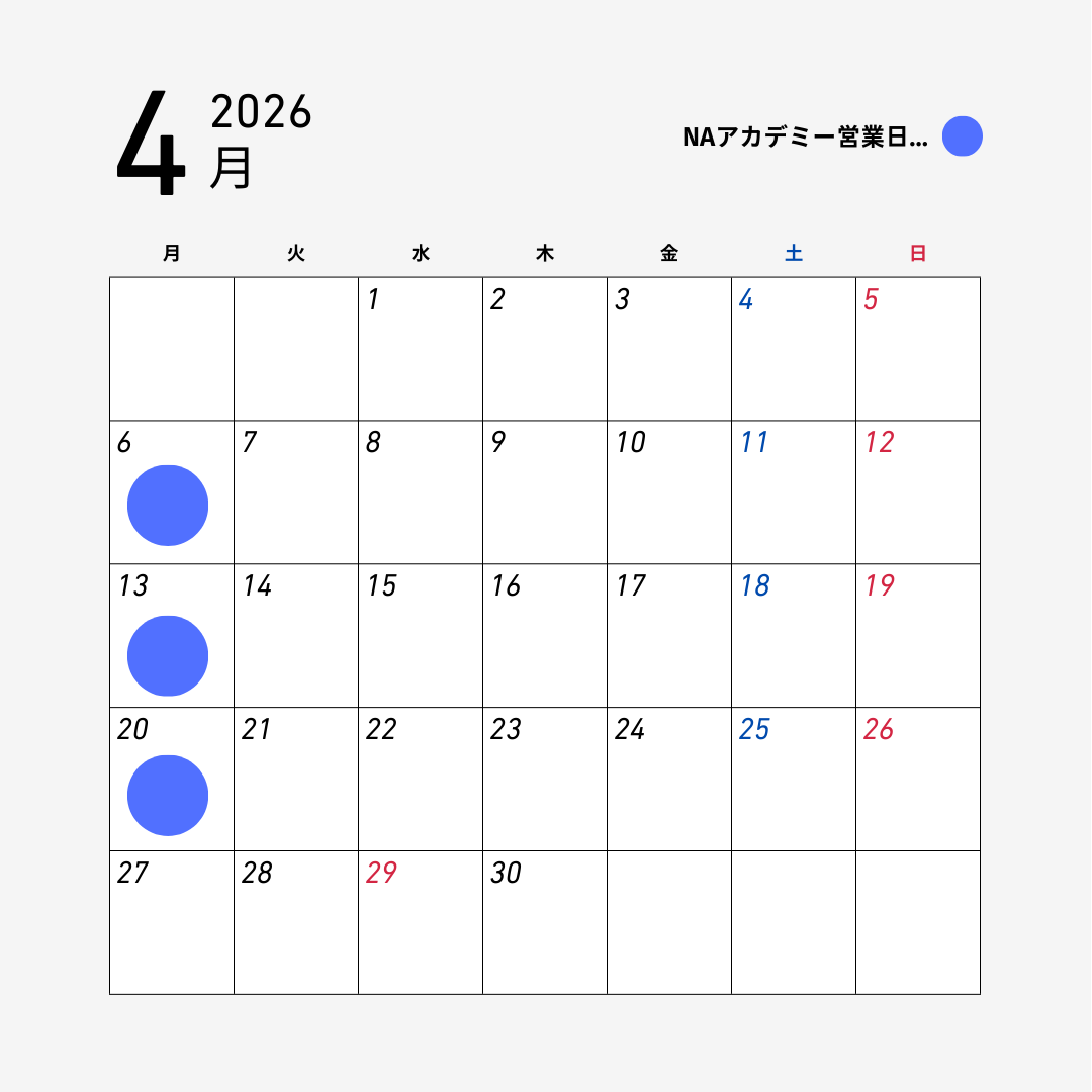 NAアカデミー・サロンの営業日は毎週月曜日です。その他の曜日は、通常通りのBambooDA二日市店の営業日となります。